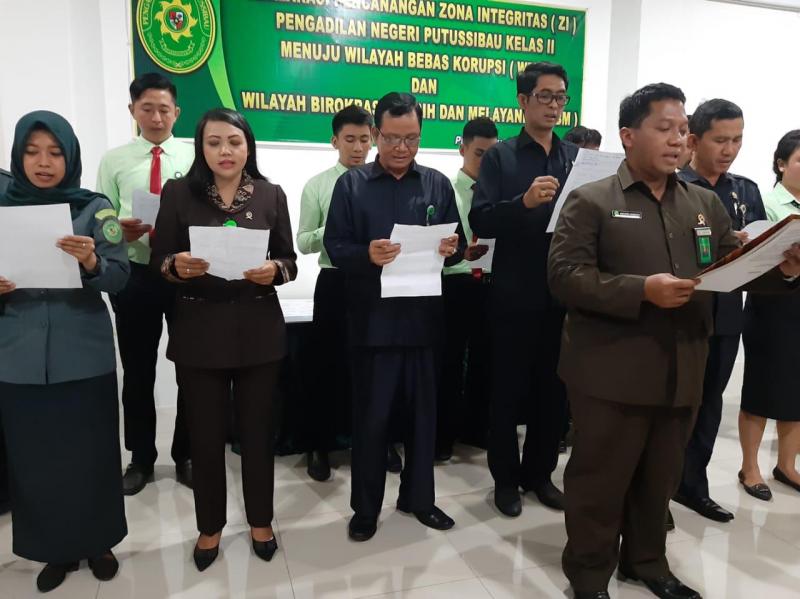 SelengkapnyaPengadilan Negeri (PN) Putussibau menggelar deklarasi Pencanangan Pembangunan Zona Integritas dalam rangka Pembangunan Wilayah Bebas dari Korupsi (WBK) dan Wilayah Birokrasi Bersih dan Melayani (WBBM). Ketua PN Putussibau Kelas II, Saputro Handoyo.