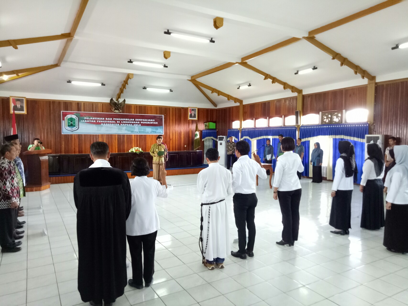 SelengkapnyaBupati Kapuas Hulu, AM. Nasir, SH melantik dan mengambil sumpah janji jabatan 15 orang pejabat Fungasional di lingkungan Pemerintah Kabupaten Kapuas Hulu. Kegiatan itu dilaksanakan di Aula Setda Kapuas Hulu, Jumat 02 Maret 2018 pagi. Sekretaris.