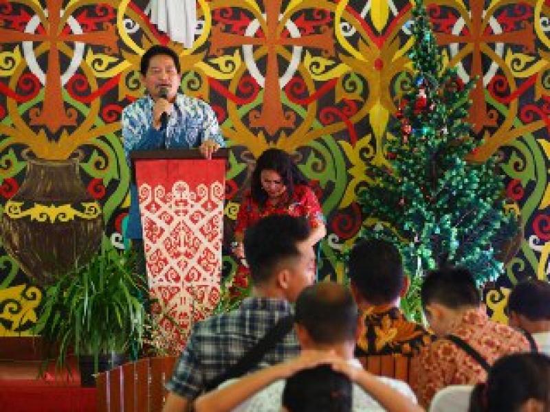 Umat Katolik stasi Pala Pulau, Paroki Hati Santa Prawan Maria, Putussibau mengadakan Natal Bersama di Gereja Santo Ignatius Pala Pulau kecamatan Putussibau Utara, Minggu (12/1/2020). Wakil Bupati Kapuas Hulu, Antonius L Ain Pamero, SH, berserta.