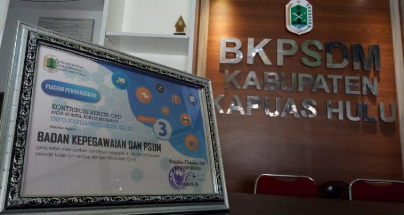 BKPSDM Kabupaten Kapuas Hulu memperoleh Piagam Penghargaan Kategori Kontribusi Berita OPD Terbanyak dari Pemerintah Kabupaten Kapuas Hulu dan meraih Peringkat Ke-3. Penghargaan yang telah didapat memberikan motivasi bagi BKPSDM Kabupaten Kapuas.