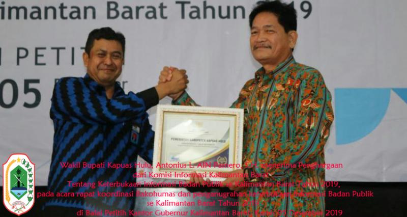 Wakil Bupati Kapuas Hulu, Antonius L. AIN Pamero, S.H. menghadiri acara rapat koordinasi Bakohumas dan penganugrahan keterbukaan informasi Badan Publik se Kalimantan Barat tahun 2019. Acara tersebut dipusatkan di balai petitih kantor Gubernur.