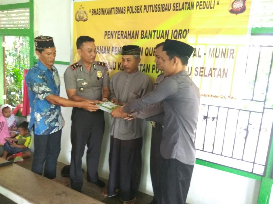 SelengkapnyaBhabinkamtibmas Polsek Putussibau Selatan menyerahkan bantuan Iqro kepada Taman Pendidikan Quran (TPQ) Al Munir Lunsara, Desa Suka Maju Kecamatan Putussibau Selatan, Rabu 20 Desember 2017. TPQ Al Munir Lunsara, Desa Suka Maju.