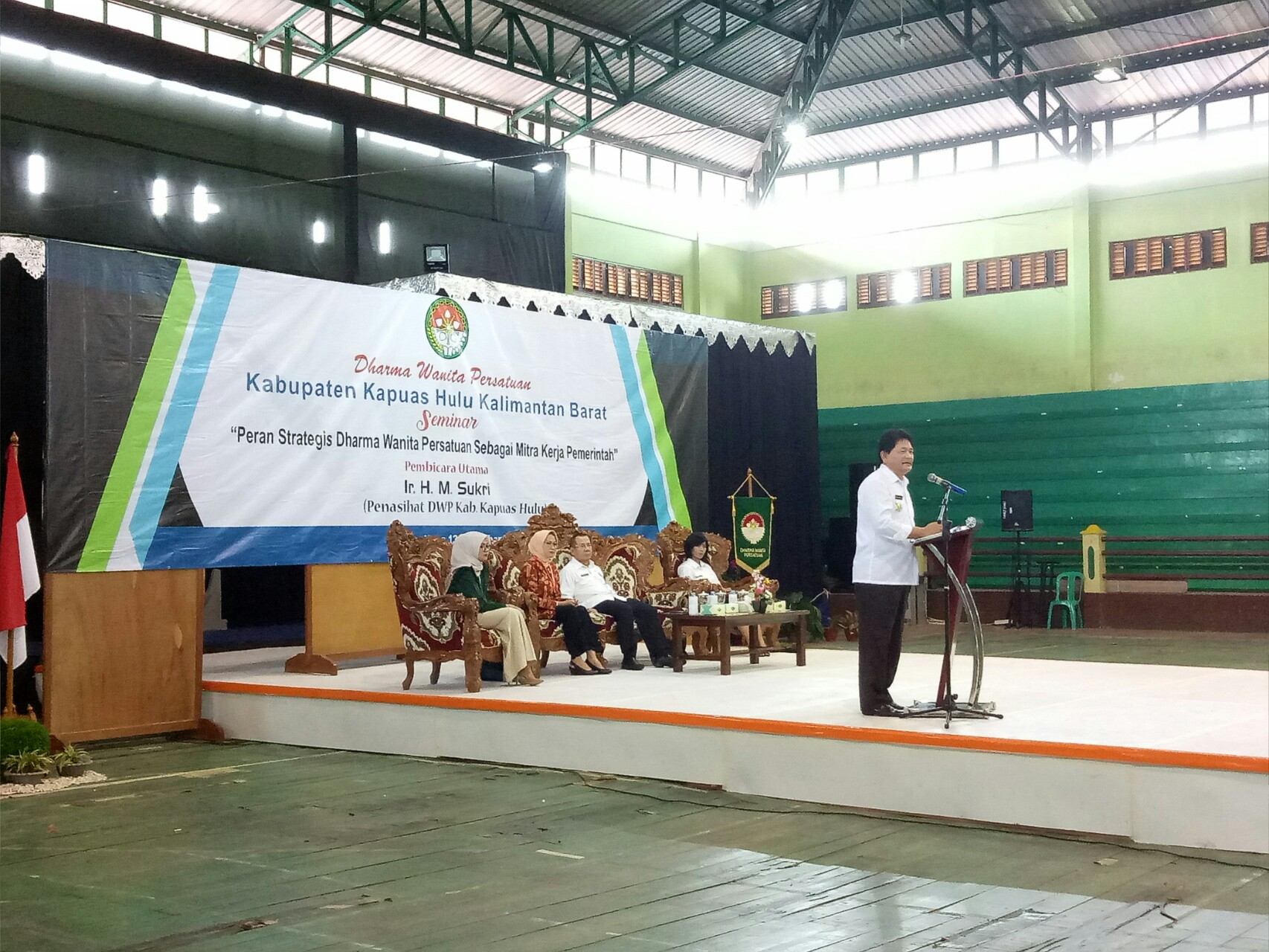 Ratusan anggota Dharma Wanita Persatuan (DWP) Kabupaten Kapuas Hulu mengikuti seminar ‘Peran Strategis DWP Sebagai Mitra Kerja Pemerintah’ di gedung Volley Indoor Putussibau, Rabu 13 Desember 2017. Kegiatan itu turut dihadiri.