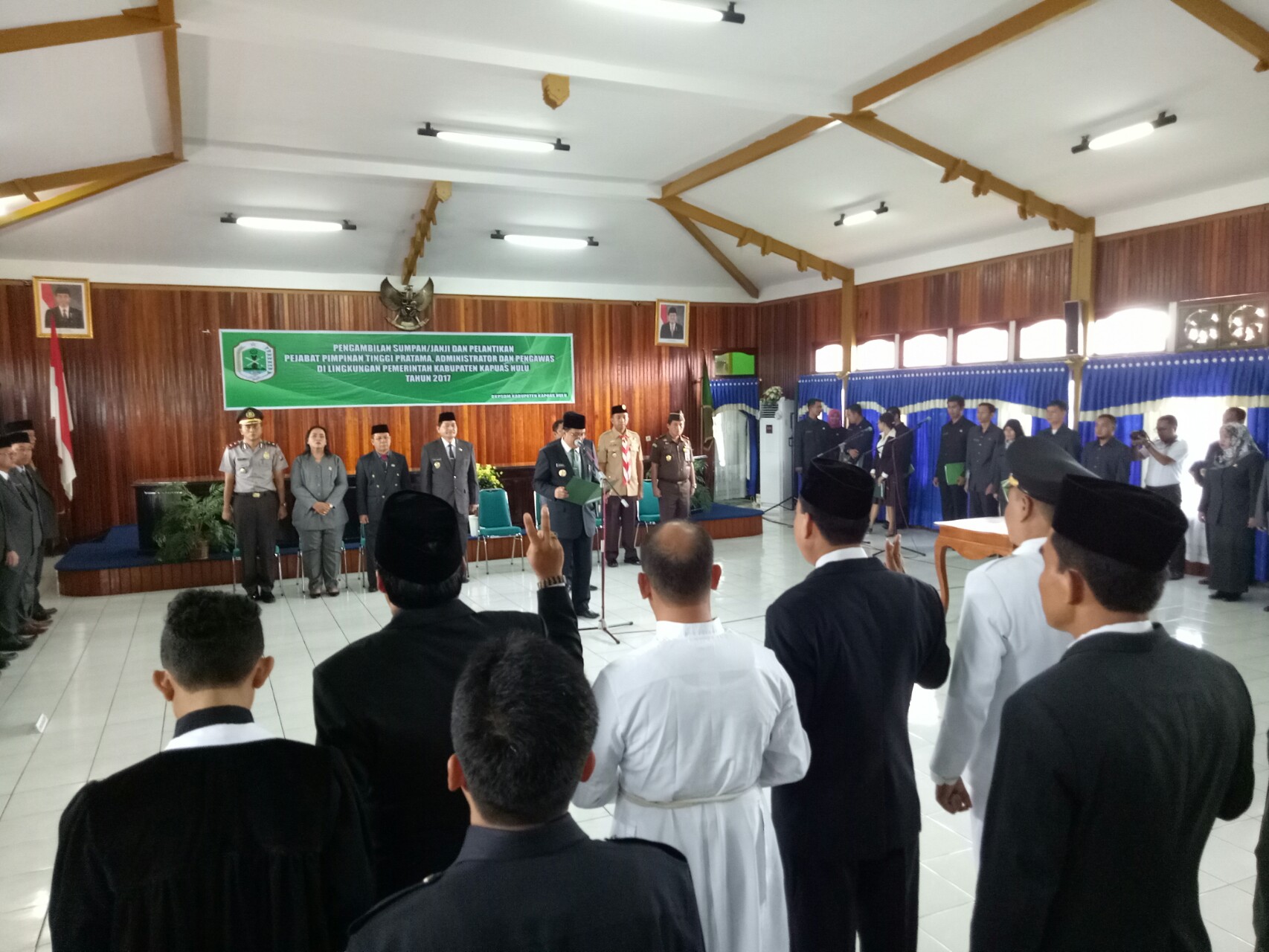 SelengkapnyaBupati Kapuas Hulu, AM. Nasir, SH melakukan pengambilan sumpah atau janji dan pelantikan Pejabat Pimpinan Tinggi Pratama, administrator dan pengawas di lingkungan Pemerintah Kabupaten Kapuas Hulu Tahun 2017, di Aula Sekretariat Daerah setempat,.