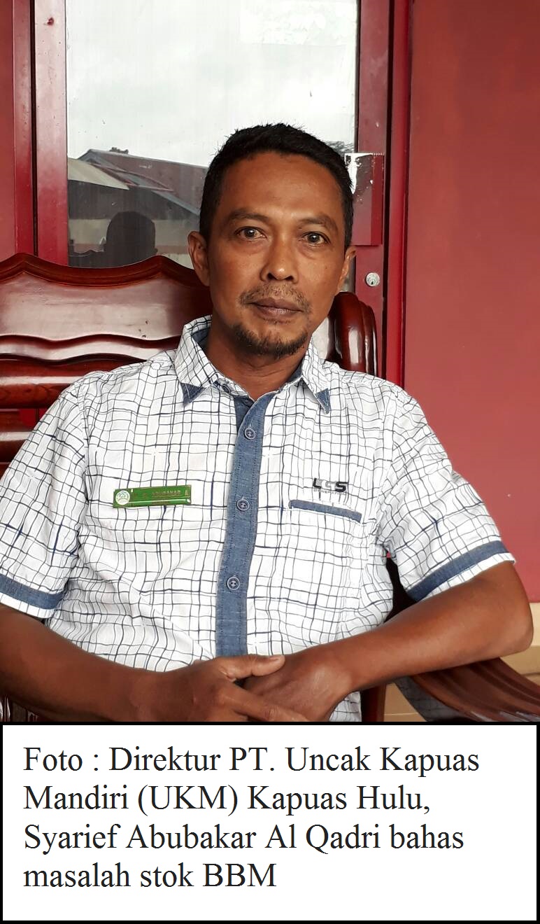 SelengkapnyaDirektur PT. Uncak Kapuas Mandiri (UKM) Kapuas Hulu, Syarief Abubakar Al Qadri mengatakan, stok BBM (Bahan Bakar Minyak) sangat tergantung dengan transporter pertamina. Badan Usaha Milik Daerah (BUMD) Pemerintah Kabupaten Kapuas Hulu ini.
