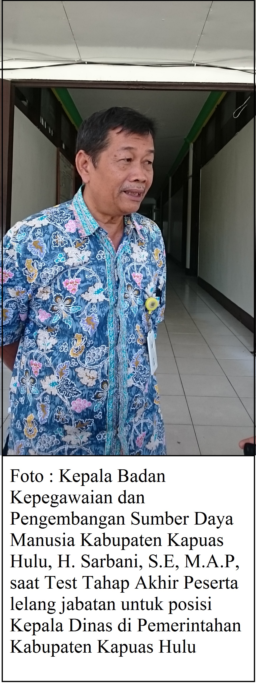 SelengkapnyaPeserta lelang jabatan untuk posisi Kepala Dinas di Pemerintahan Kabupaten Kapuas Hulu sudah memasuki tahap akhir, yakni seleksi wawancara. Ada 12 posisi Kepala Dinas yang diperebutkan oleh 40 orang peserta lelang. Kepala Badan Kepegawaian dan.