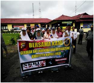 Jalan dalam kota Putussibau tampak ramai pada Kamis (18/02/2016) pagi. Sekitar 650 siswa SMP, SMA bersama jajaran Porles Kapuas Hulu melalukan long-much mengitari jalan poros kota sembari membawa spanduk yang meyatakan perang terhadap Narkoban dan.