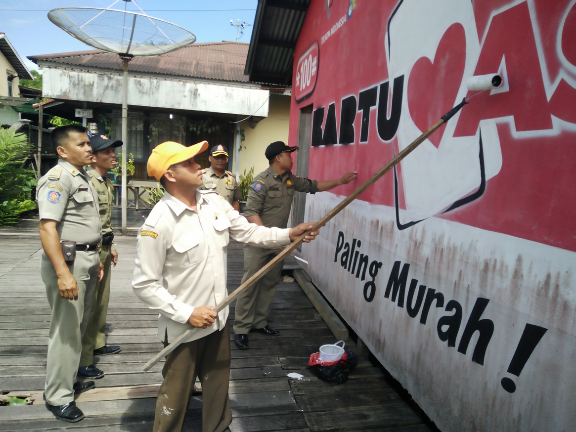 Dinas Pendapatan, Pengelolaan Keuangan dan Aset Daerah (DPPKAD) Kabupaten Kapuas Hulu bersama Satuan Polisi Pamong Praja (Sat Pol PP) Kabupaten Kapuas Hulu, melakukan penertiban terhadap reklame tak berizin yang berada di Kelurahan Putussibau Kota,.