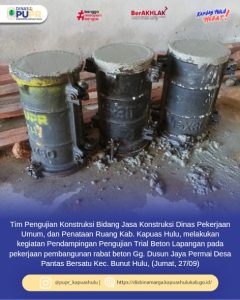 Tim Pengujian Konstruksi Bidang Jasa Konstruksi Dinas Pekerjaan Umum, dan Penataan Ruang Kab. Kapuas Hulu, melakukan kegiatan Pendampingan Pengujian Trial Beton Lapangan pada pekerjaan pembangunan rabat beton Gg. Dusun Jaya Permai Desa Pantas.