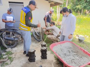 SelengkapnyaGusti Aisamuddin,S.T., Valery,S.ST. dan Gradia Tutu Sari, S.T., selaku Tim Pengujian Konstruksi Dinas Pekerjaan Umum Kab.Kapuas Hulu melakukan pendampingan pengujian Trial Beton Lapangan pada pekerjaan rabat beton Ds.Pinang Laka Kec.Pengakadan.