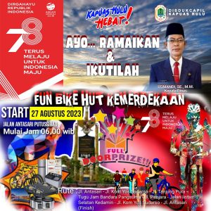 Sobat DMM Kapuas Hulu… Yuk ramaikan dan ikuti FunBike sehat bersama ” Bupati Kapuas Hulu-Fransiskus Diaan dan Wakil Bupati Kapuas Hulu-Wahyudi Hidayat (Ketum ISSI Kabupaten Kapuas Hulu) dalam rangka memeriahkan HUT RI.