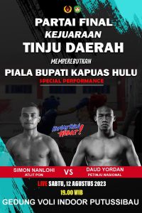 SelengkapnyaPartai Final Kejuaraan Tinju Daerah Piala Bupati Kapuas Hulu di Gedung Volli Indoor Putussibau pada Sabtu (12 Agustus 2023) pukul 19.00 WIB. The post Partai Final Kejuaraan Tinju Daerah Piala Bupati Kapuas Hulu appeared first on Info Kapuas.