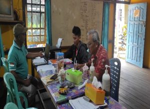PUTUSSIBAU – Stap Bidang UPTD Pemeliharaan Infrastruktur Keciptakaryaan Dinas Pekerjaan Umum dan Penataan Ruang Kabupaten Kapuas Hulu bersama toko masyarakat Melakukan Kegiatan Monitoring Perbaikan Pemasangan Jaringan Pipa Air Bersih.