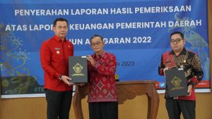 Bupati Kapuas Hulu Fransiskus Diaan menghadiri acara penyerahan laporan hasil pemeriksaan (LHP) atas laporan keuangan pemerintah daerah (LKPD) tahun anggaran 2022 di Pontianak pada Jumat (12/05/2023). Untuk kesekian kalinya Pemerintah Kabupaten.