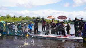 Bupati Kapuas Hulu Fransiskus Diaan,S.H bersama Wakil Bupati Kapuas Hulu Wahyudi Hidayat,S.T melaksanakan panen raya di Danau Lindung Pengelang Desa Teluk Aur Kecamatan Bunut Hilir pada Minggu (7/5/2023). Dalam kegiatan panen raya ikan.