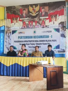 Boyan Tanjung – Kegiatan Pengembangan Infrastruktur Sosial Ekonomi Wilayah (PISEW) di laksanakan langsung di Aula Kantor Camat Boyan Tanjung pada Senin (03/04/2023). Pertemuan tersebut dihadiri langsung oleh Camat dan Sekcam beserta Kasi.