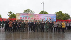 Kepala Dinas Kesehatan Pengendalian Penduduk dan Keluarga Berencana (Dinkes PP dan KB) Kabupaten Kapuas Hulu H. Sudarso, S.Pd.,MM mendampingi Bupati Kapuas Hulu Fransiskus Diaan, SH menghadiri Apel dalam rangka HUT ke-77 Tentara Nasional Indonesia.