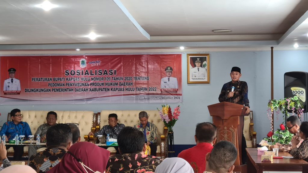 Wakil Bupati Kapuas Hulu membuka secara resmi Sosialisasi Peraturan Bupati Kapuas Hulu Nomor 109 Tahun 2020 tentang Pedoman Penyusunan Produk Hukum Daerah bertempat di Aula Kantor BAPPEDA, Kabupaten Kapuas Hulu pada Kamis pagi.