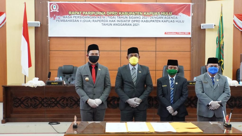 Putussibau – Fransiskus Diaan, S.H menyampaikan Pidato Pendapat Akhir Bupati Kapuas Hulu terhadap 2 Rancangan Peraturan Daerah inisiatif Dewan Perwakilan Rakyat Daerah Kabupaten Kapuas Hulu. Di ruang Sidang Paripurna DPRD Kapuas Hulu.