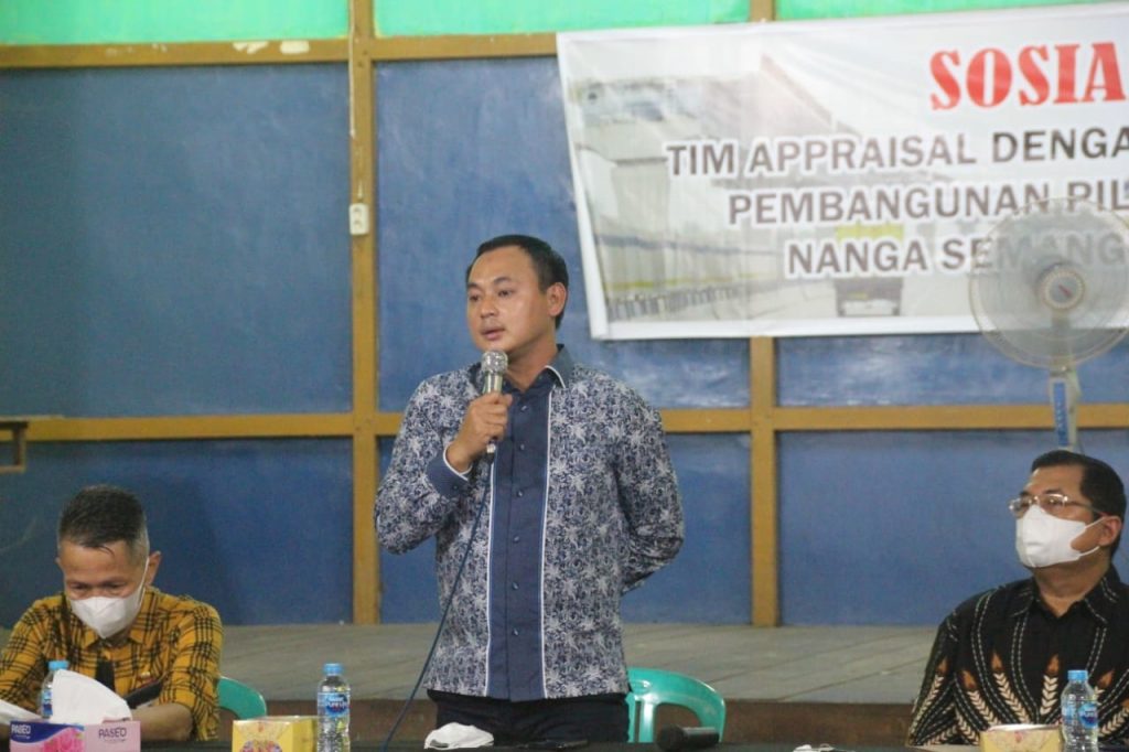 Putussibau, Wakil Bupati Kapuas Hulu Wahyudi Hidayat, S.T Menghadiri Sosialisasi Appraisal dan Penjadwalan Penilaian Lapangan terhadap tanah warga yang terdampak rencana pembangunan Pile Slab ruas jalan Na. Semangut – Putussibau.