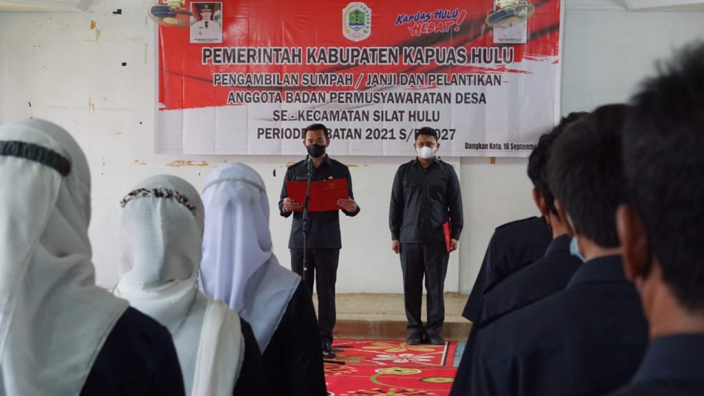 Kapuas Hulu – Bupati Kapuas Hulu Fransiskus Diaan beserta rombongan unsur pimpinan Organisasi Perangkat Daerah (OPD) Kabupaten Kapuas Hulu melaksanakan Pengambilan Sumpah / Janji dan Pelantikan Anggota Badan Permusyawaratan Desa (BPD).