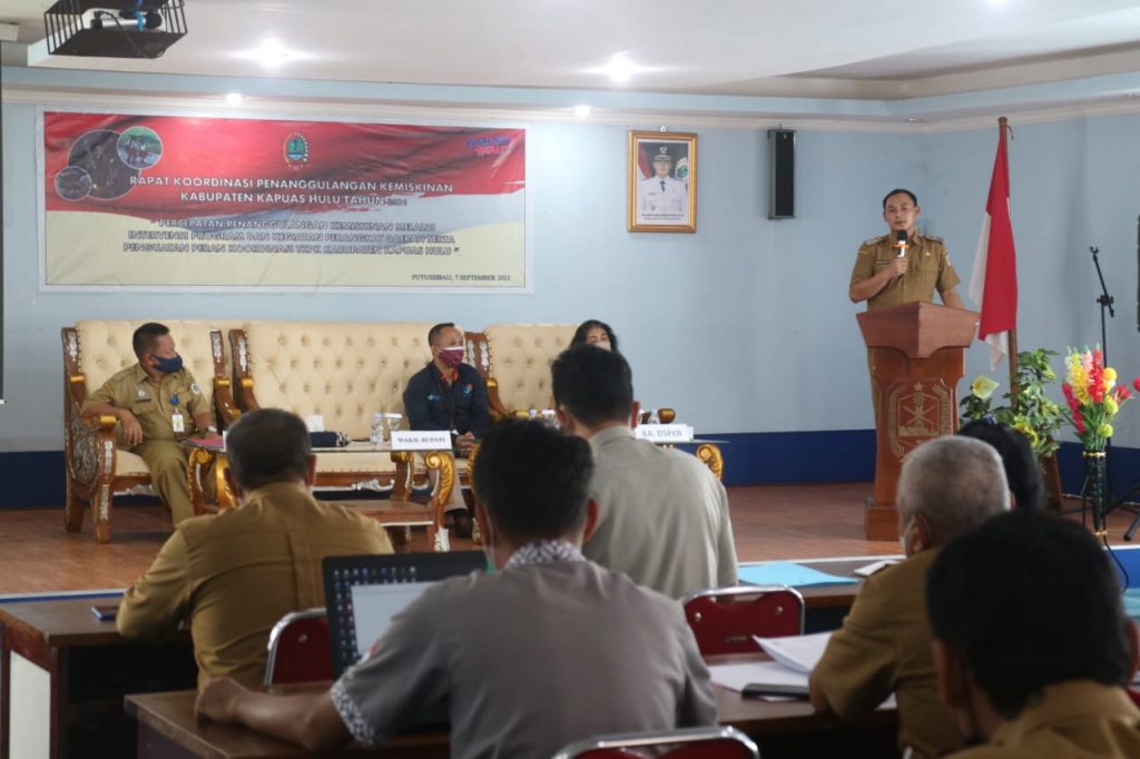 Putussibau – Wakil Bupati Kapuas Hulu, Wahyudi Hidayat, S.T membuka Rapat Koordinasi Penanggulangan Kemiskinan Kab.Kapuas Hulu Tahun 2021 di Aula Bappeda Kab.Kapuas Hulu, Selasa (7/9/2021) Kegiatan rapat koordinasi penanggulangan.