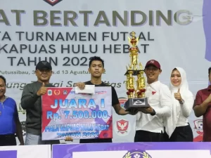 “turnamen futsal ini merupakan merupakan salah satu upaya kita untuk meningkatkan semangat olahraga dalam menciptakan kesehatan jasmani dan rohani bagi seluruh pegawai di lingkungan instansi dan saya juga mohon maaf atas segala kekurangan, kedepan akan kita evaluasi kembali” sampai Wabup Kapuas Hulu yang akrab disapa Bang Wahyu.